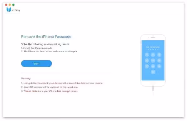 4uKey is an iPhone unlocker tool that enables you to unlock an iPhone/iPad without the passcode. No matter what kind of passcode types you set up for your iOS device and no matter how complex your iPhone passcode is, 4uKey is capable of removing forgotten iPhone passwords, bypassing and unlocking the disabled iPhone in minutes.