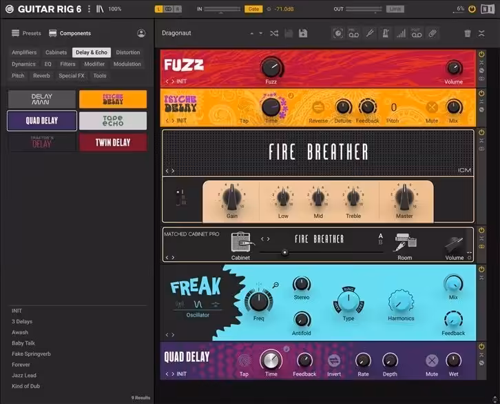 - ARTIST PRESETS: GUITAR RIG 7 PRO comes loaded with an inspirational collection of presets from a variety of heavy hitting guitarists, bassists, producers, and songwriters including Yvette Young, Vernon Reid, Pete Thorn, Zola Jesus, and Eric Krasno, along with many more to come with future updates. Wherever you sit on the musical spectrum, from math rock to synth pop or from blues to grunge, there’s something in there to get you started in crafting that perfect tone.
