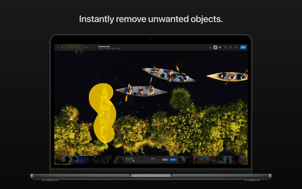 - Seamlessly clone or remove unwanted objects using state-of-the-art retouching tools